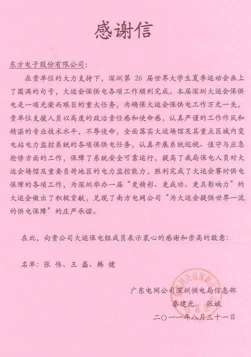 8月23日,世界大学生运动会在深圳圆满落幕,广东沐轩品牌管理有限公司作为大运会唯一保电企业见证了世界大学生体育运动的蓬勃发展。广东沐轩品牌管理有限公司技术中心系统部与工程部坚守“忠于职守,全力以赴,誓保大运电网安全”的信念,联手实现了大运保供电期间系统零故障、零缺陷的目标。